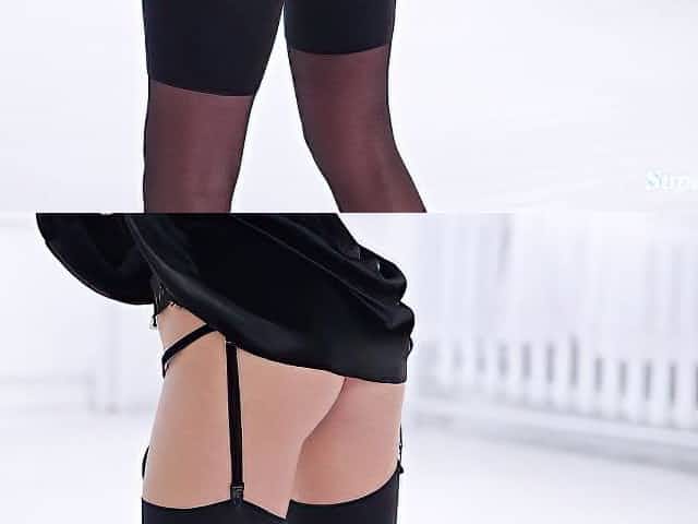 Hot babe shows her naked body and then puts on some incredibly sexy stockings.