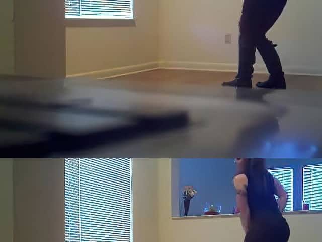 Katie Jordan in Undercover Police Work Video, Katie answers the knock at the door and welcomes Eric in who is there for his mass