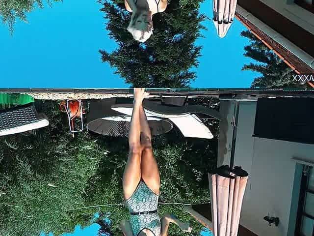Erotic in the outdoor swimming pool with naked Zazie