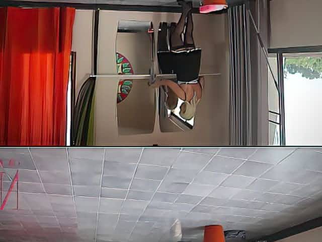 Maid is cleaning the ballet class. Wet dress, masturbation. Cam 2