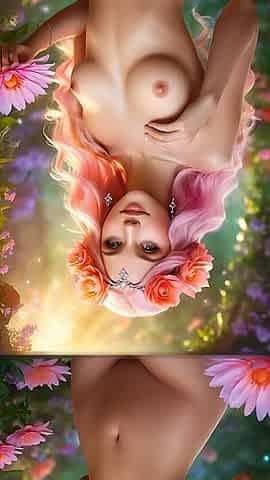 Ai Artistic Nude - Beautiful Woman Holding Aster with Rose-coral Diamond Jewelry