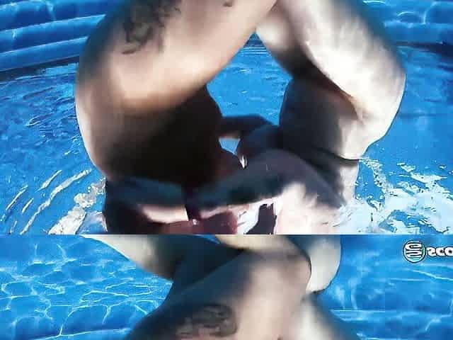 Superb blonde chick get naked in pool then fuck each other