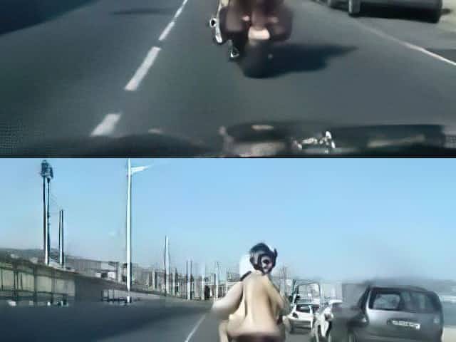Smoking hot chick gets completely naked and rides a motorcycle