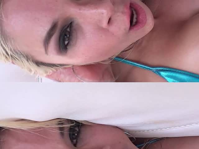 A blonde that has huge tits is getting her pussy stretched