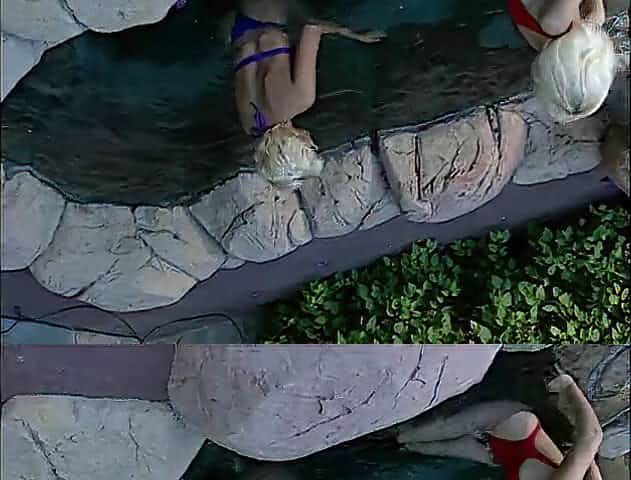Blond coeds get naked in pool then fuck each other