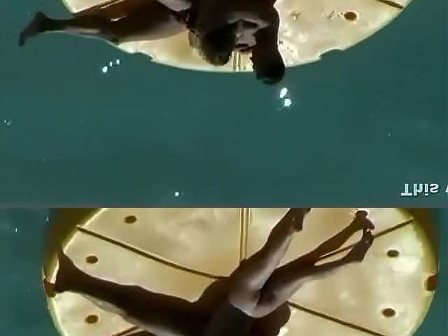 Horny college girls stripping naked in the pool