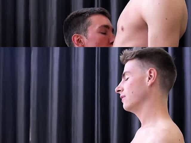 Naked gay lads in scenes of fellatio job while exposed