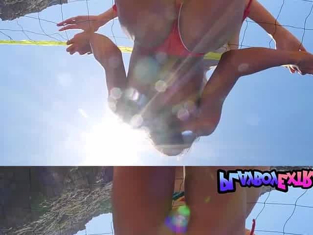 Fit bikini redhead GF flashing in public on waterfront