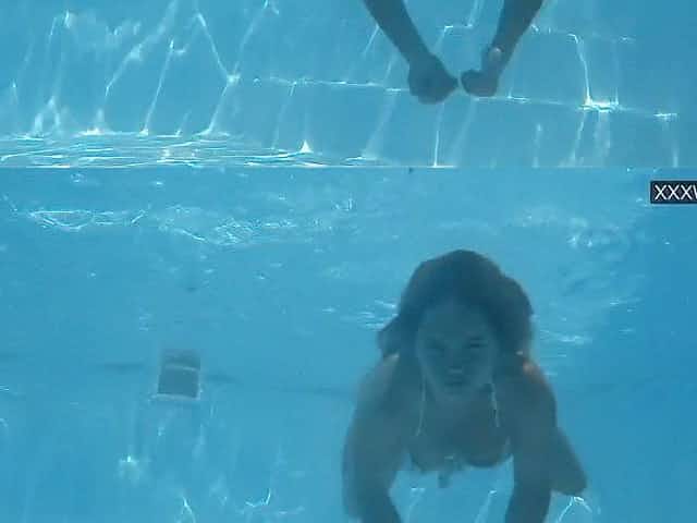 Lina Mercury Russian large bazookas pornstar enjoys swimming pool
