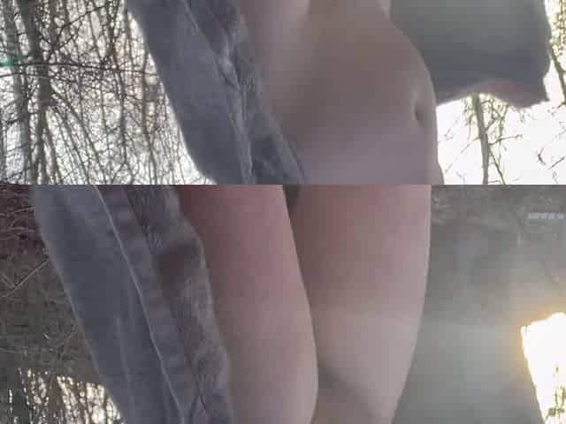 Nude in woods. Below petticoat out of pants