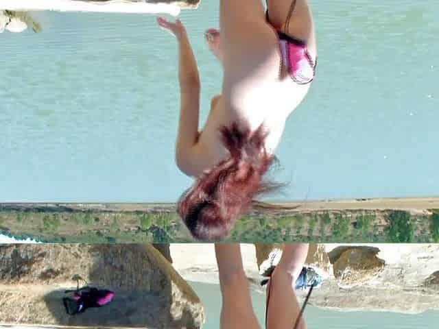 Naked badass sluts jumping into a lake