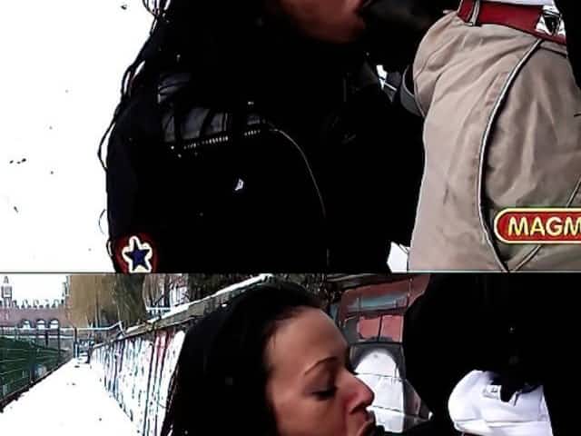 German Milf riding BBC in public in the snow of Berlin