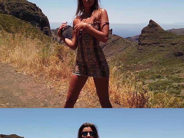 Hot brunette babe stripping anad posing naked outdoors