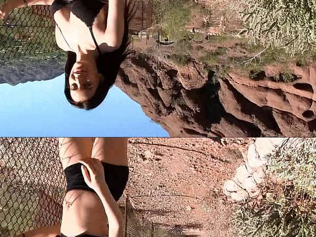 Sexy Kandace visits the deserts to get naked and expose her tits