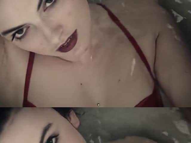 Sexy brunette getting wet on the stage