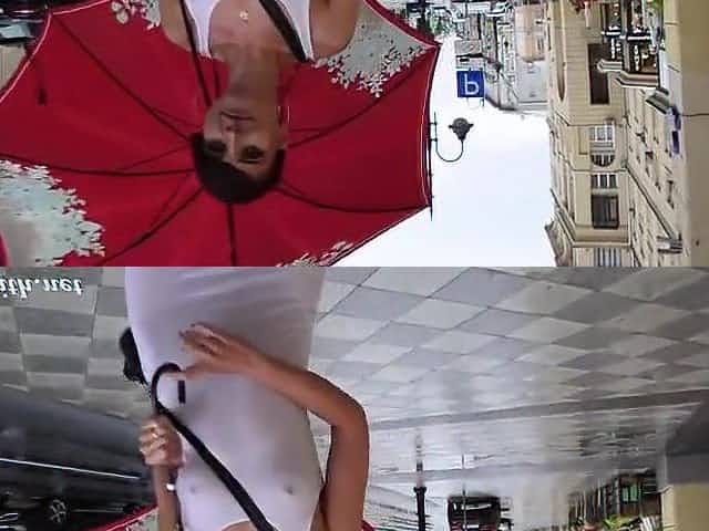 Great looking brunette hair, Jeny Smith is enjoying to be nude in various public places, whilst raining