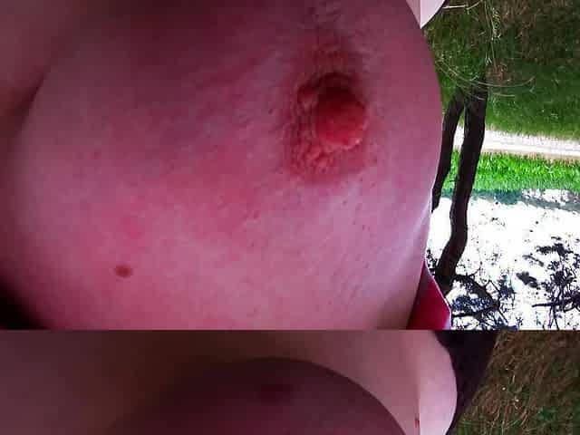 "Titslapping in nature while cars drive past"
