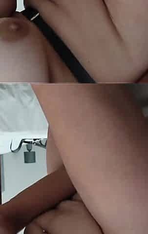 Seductive Desi babe teasingly unveils her stunning melons and indulges in naughty breast play.