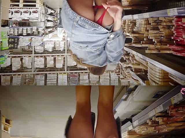 Brunette walking in the mall and naked - outdoor nudity