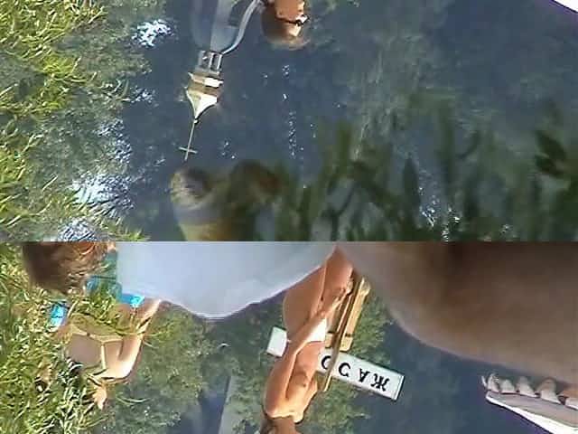 Woman filmed in secret while bathing in a outdoor scene