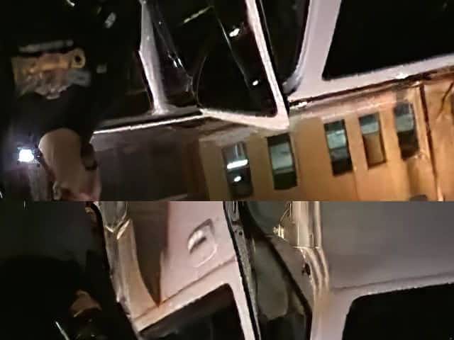 Lovely girl gets naked in a car