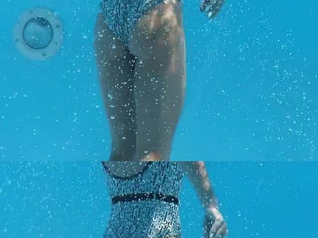 Beautiful and seductive girl swimming in a pool naked