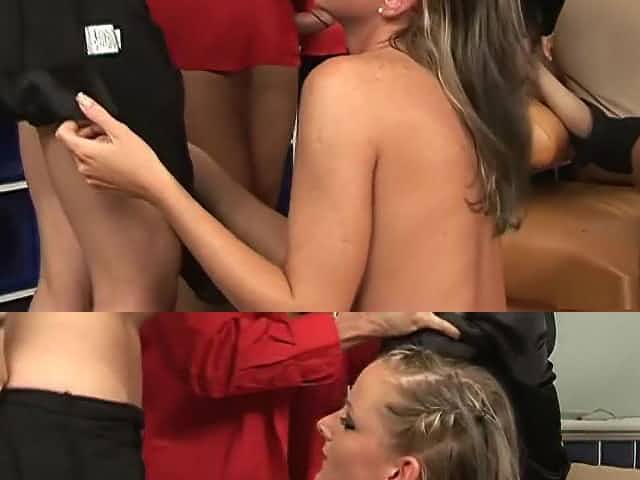 Carmen Valentina and Naomi Woods tag team blowjob
