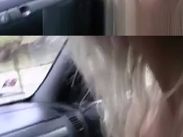 Nasty naked slut in the car toying her pussy with a dildo