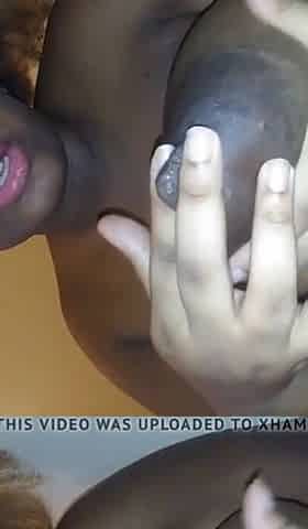 Aged Black discharges milk out of her biggest boob