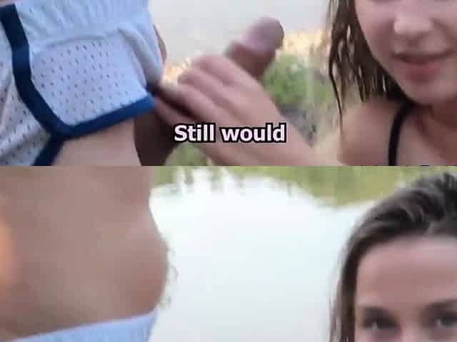 Blonde Cheerleader Fucked Outside By Two Guys