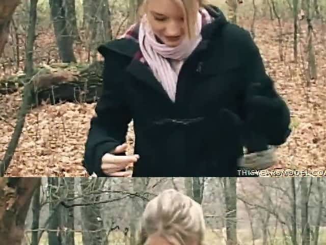Adorable golden-haired sweetheart, Jewel is banging a stranger in the forest and enjoying it a lot