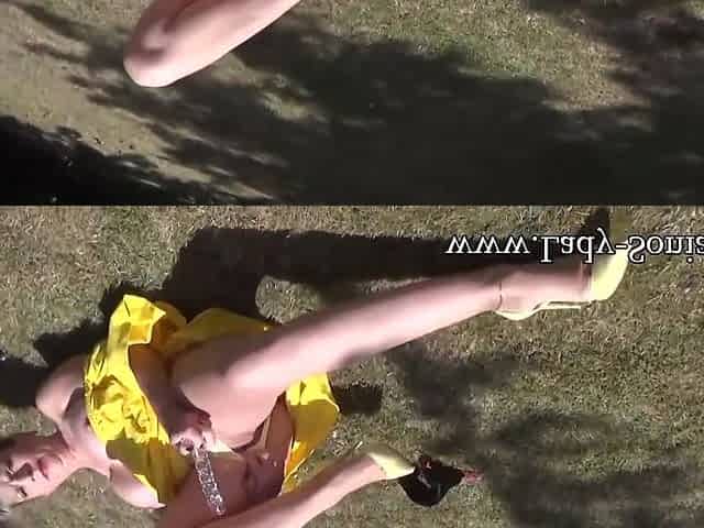 Flashes Her Tits And Masturbates Outdoors With Lady Sonia