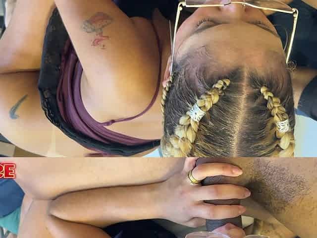Sloppy blowjob with naughty gf in panties while her parents at home