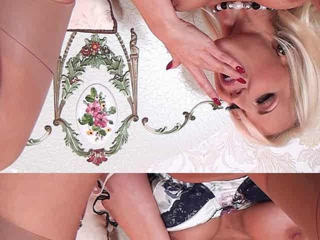 Naughty hottie in fishnet stockings Katrina Jade fucks her muff with vibrator