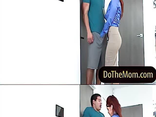 Naughty mommy Rachael Cavalli gives a blowjob to her stepson and enjoys spying on him and his GF