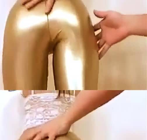 Girl in sexy latex leggings getting naughty with her boy