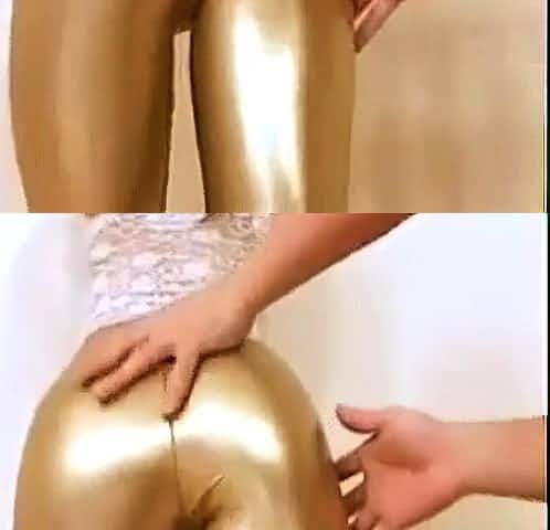 Girl in sexy latex leggings getting naughty with her boy