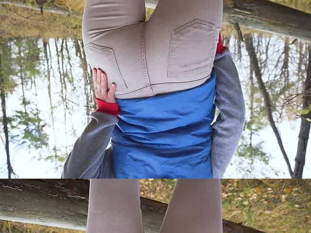 Naughty amateur cougar flaunts her sexy visible panty line in tight pants outdoors
