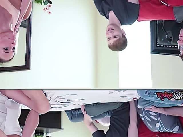 Naughty Teens Tease Their Stepdad While Stepmom Is Upstairs