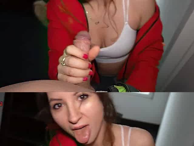 Hot Wife Sucks Uncut Cock and Plays with Foreskin Until He Cums on Her Tongue