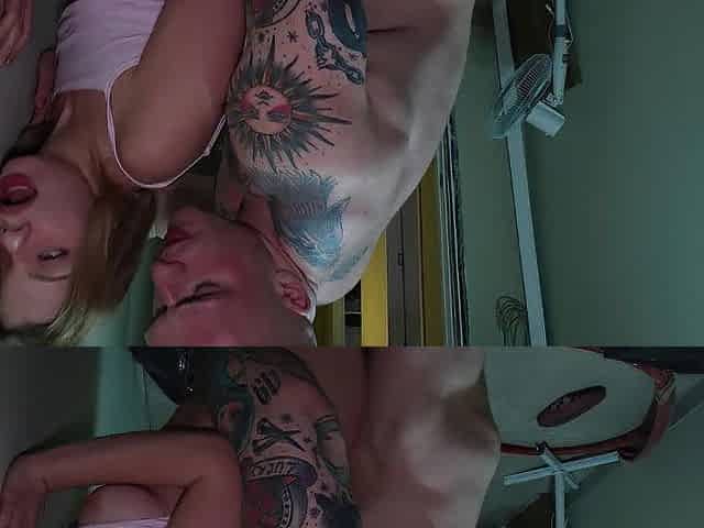 Cherry Candle, a redhead tattooed woman, has sex with her neighbor in front of her step-brother: Porn