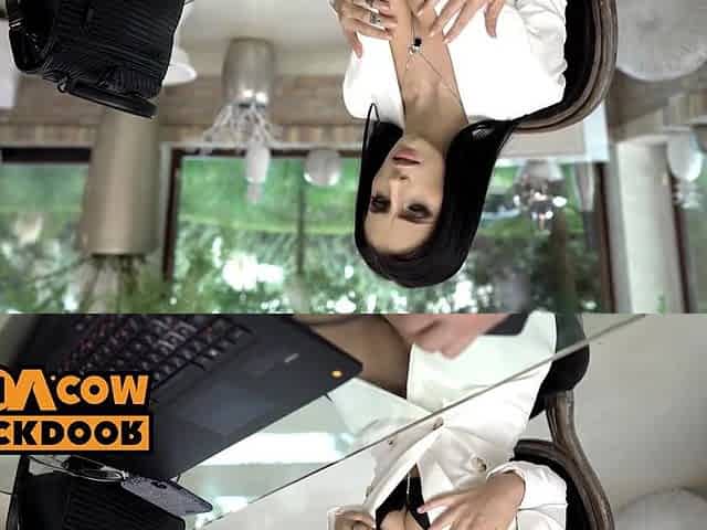 Beautiful Brunette Is Fucked Hard By Her Horny Neighbor With A Strap-on