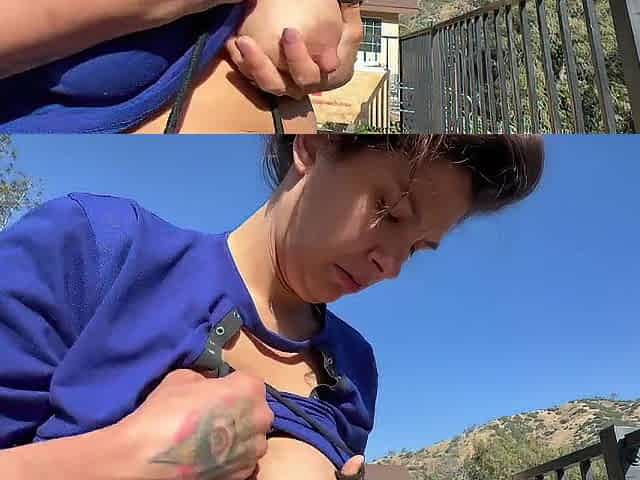 I invite my neighbour over gulp sexy milk out of my tit