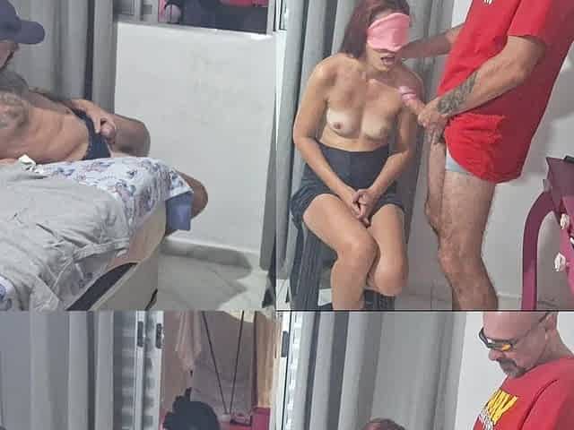 Prank with Blindfolded Wife...cuckold Calls Neighbor to Participate.