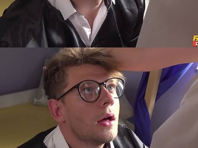 A collge thot and a nerd do naughty things after graduation.