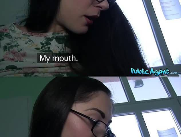 Sensual nerdy chick Alma Del Rey gets fucked in a public place