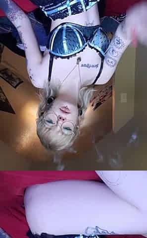 Graceful Slim Inked Blonde Cutie In Nerdy Glasses Smokes & Masturbates On Camera To Tease You