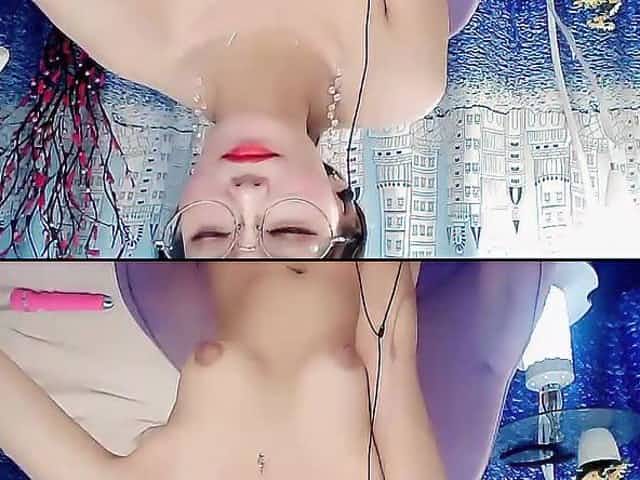 Slim asian cam whore charms with nerdy glasses and small tits