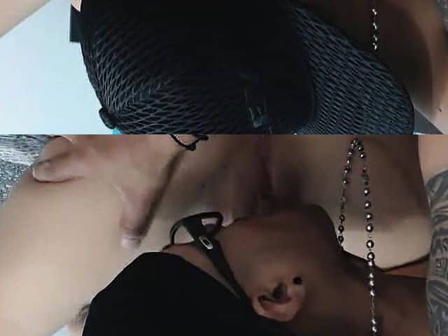 Nerdy ebony slut sucking cock cumshot on her tits