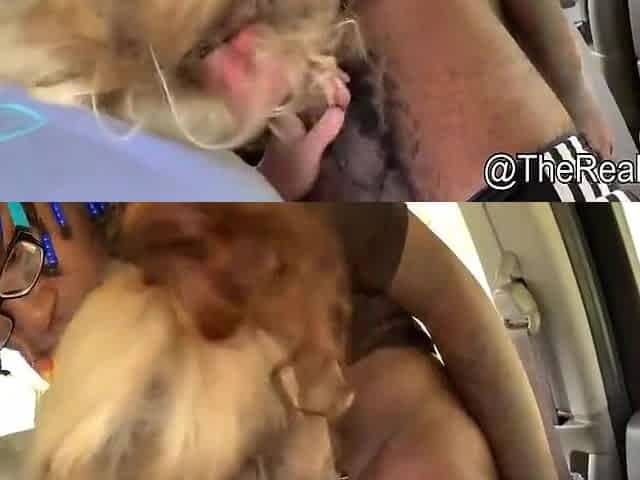 confident girlfriend gives nervous boyfriend blowjob on bus